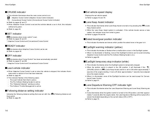 x When Adaptive Cruise Control is set or when the vehicle is stopped, this indicator illumi-
