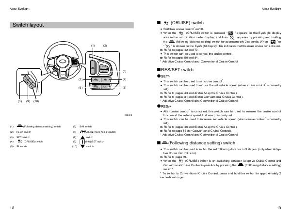 ” is shown on the EyeSight display, this indicates that the main cruise control is on.