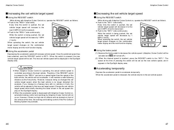 (1) Depress the brake pedal to decrease the vehicle speed. (Adaptive Cruise Control will be