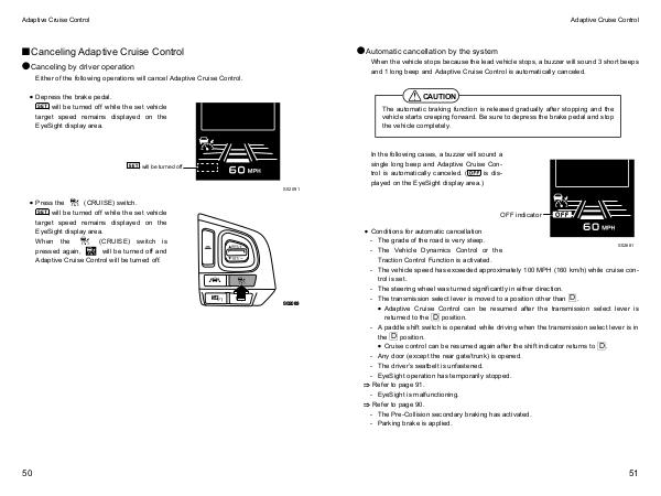 - EyeSight operation has temporarily stopped.