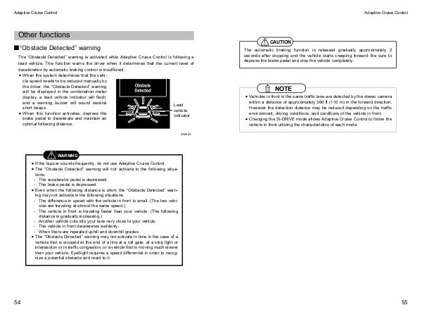 than your vehicle. EyeSight requires a speed differential in order to recog-