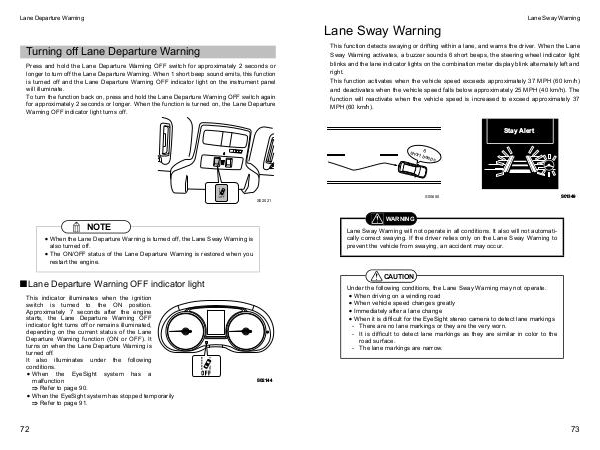 x When the Lane Departure Warning is turned off, the Lane Sway Warning is