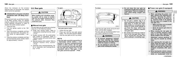 . Be careful not to hit your head or face on the rear gate when opening or closing the rear gate and when loading or unloading cargo .