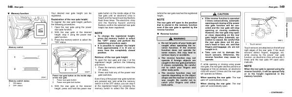 Even if any of the power rear gate switches are pressed and held while the memory switch is in the OFF status , you can stop it at the registered height by pressing the memory switch to select the ON status