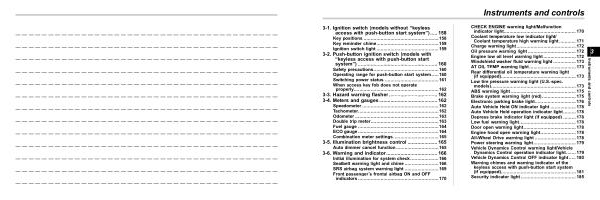 3-2 . Push-button ignition switch ( models with “ keyless access with push-button start system ”) ........................................................ 160