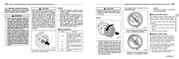3-1 . Ignition switch ( models without “ keyless access with push-button start system ”)