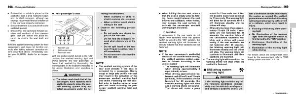 – When driving more than approximately 13 mph ( 20 km / h ), if seatbelts are not fastened for 35 seconds , the warning lights of the unfastened seatbelts will blink and a chime will sound loudly . If the rear seatbelts are not fastened after 35 seconds , the blinking warning light will illuminate steadily and the chime will stop . The warning lights will continue to illuminate until their seatbelts are fastened .