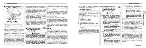 . After turning the ignition switch to the “ ON ” position , if this indicator light / warning light behaves in any of the following ways , the electrical system may be malfunctioning . Contact your SUBARU dealer immediately for an inspection .