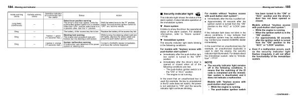 In the event that an unauthorized key ( for example , an unauthorized duplicate ) is used to start the engine , the security indicator light illuminates . For details about the immobilizer system , refer to “ Immobilizer ” FP127 .