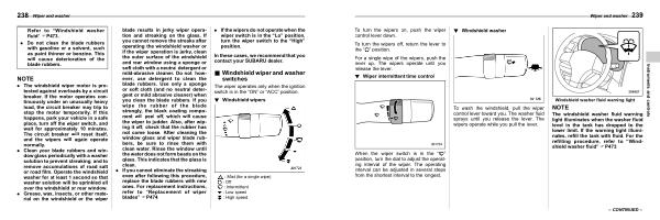 The windshield washer fluid warning light illuminates when the washer fluid level in the tank has dropped to the lower limit . If the warning light illuminates , refill the tank with fluid . For the refilling procedure , refer to “ Windshield washer fluid ” FP473 .