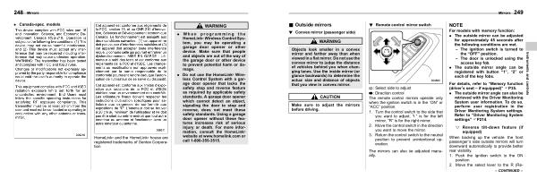 . The outside mirror can be adjusted for approximately 45 seconds after the following conditions are met . – The ignition switch is turned to the “ OFF ” position . – The door is unlocked using the access key fob .