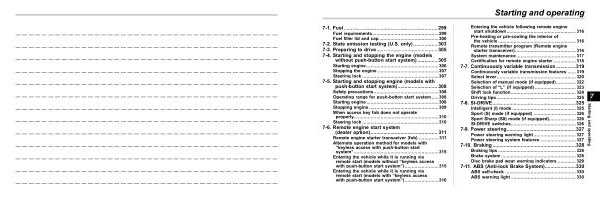 7-4 . Starting and stopping the engine ( models without push-button start system ) .............. 305