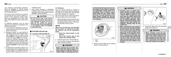Before opening the fuel filler cap , first touch the vehicle body or a metal portion of the fuel pump or similar object to discharge any sta-