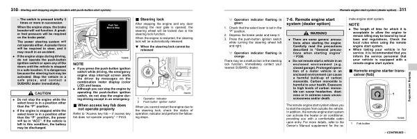 . If the engine stops during driving , do not operate the push-button ignition switch or open any of the doors until the vehicle is stopped in a safe location . It is dangerous because the steering lock may be activated . Stop the vehicle in a safe place , and contact a SUBARU dealer immediately .
