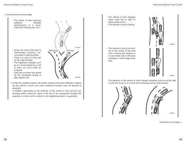 - The behavior of the vehicle in front changes suddenly ( such as at the start or end of a curve or on a road with continuous curves and corners ).