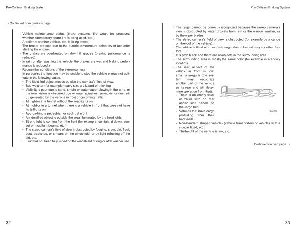 • The rear aspect of the vehicle in front is low , small or irregular ( the system may recognize another part of the vehicle as its rear and will determine operation from that ). - There is an empty truck or trailer with no rear and / or side panels on the cargo bed .
