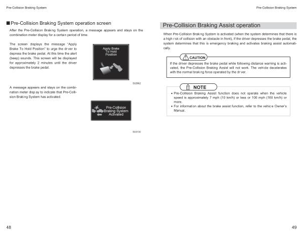 • Pre-Collision Braking Assist function does not operate when the vehicle speed is approximately 7 mph ( 10 km / h ) or less or 100 mph ( 160 km / h ) or more .