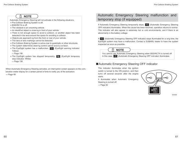 • The EyeSight system has a malfunction . ( EyeSight warning indicator : Yellow )