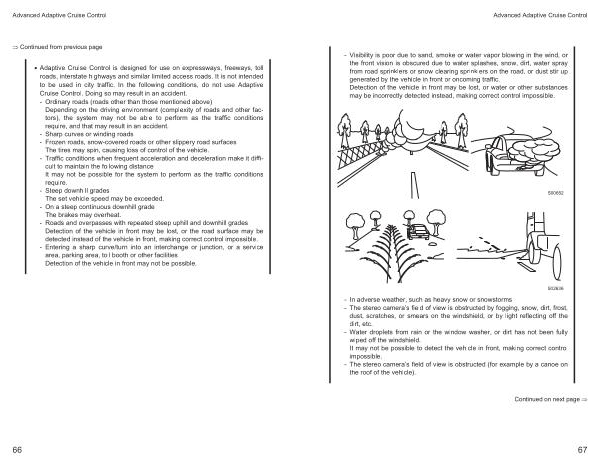 - Visibility is poor due to sand , smoke or water vapor blowing in the wind , or the front vision is obscured due to water splashes , snow , dirt , water spray from road sprinklers or snow clearing sprinklers on the road , or dust stir up generated by the vehicle in front or oncoming traffic . Detection of the vehicle in front may be lost , or water or other substances may be incorrectly detected instead , making correct control impossible .