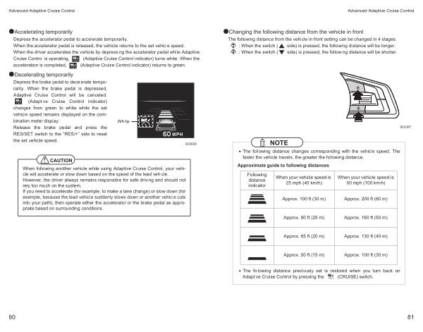 ●Decelerating temporarily Depress the brake pedal to decelerate temporarily . When the brake pedal is depressed , Adaptive Cruise Control will be canceled .