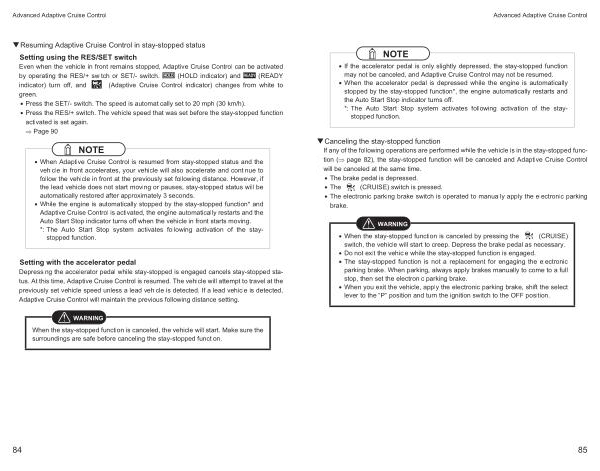 • Press the RES /+ switch . The vehicle speed that was set before the stay-stopped function activated is set again .