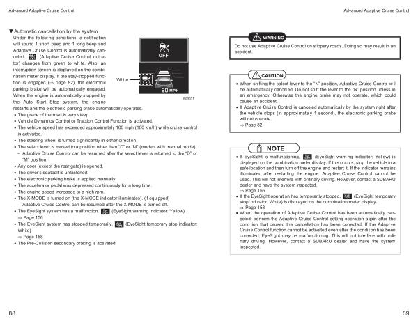 • The EyeSight system has stopped temporarily . ( EyeSight temporary stop indicator : White )