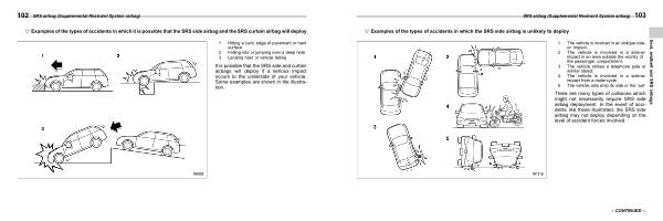 ! Examples of the types of accidents in which it is possible that the SRS side airbag and the SRS curtain airbag will deploy