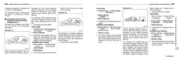 For example , the vehicle has one occupant weighing 165 lbs ( 75 kg ) plus cargo weighing 375 lbs ( 170 kg ). In addition , the vehicle is fitted with a trailer hitch weighing 22 lbs ( 10 kg ), to which is attached a trailer weighing 1,764 lbs ( 800 kg ). 10 % of the trailer weight is applied to the