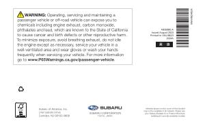 WARNING : Operating , servicing and maintaining a passenger vehicle or off-road vehicle can expose you to chemicals including engine exhaust , carbon monoxide , phthalates and lead , which are known to the State of California to cause cancer and birth defects or other reproductive harm . To minimize exposure , avoid breathing exhaust , do not idle the engine except as necessary , service your vehicle in a well-ventilated area and wear gloves or wash your hands frequently when servicing your vehicle . For more information go to www . P65Warnings . ca . gov / passenger-vehicle .