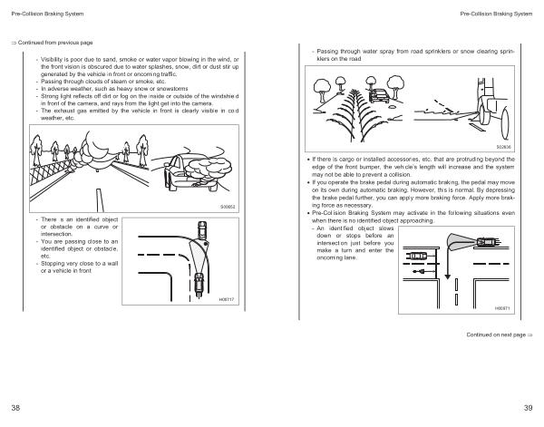 • Pre-Collision Braking System may activate in the following situations even when there is no identified object approaching . - An identified object slows down or stops before an intersection just before you make a turn and enter the oncoming lane .