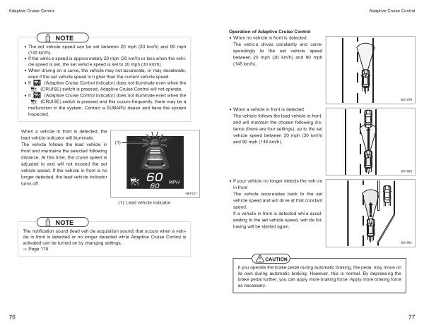 • When a vehicle in front is detected The vehicle follows the lead vehicle in front , and will maintain the chosen following distance ( there are four settings ), up to the set vehicle speed between 20 mph ( 30 km / h ) and 90 mph ( 145 km / h ).
