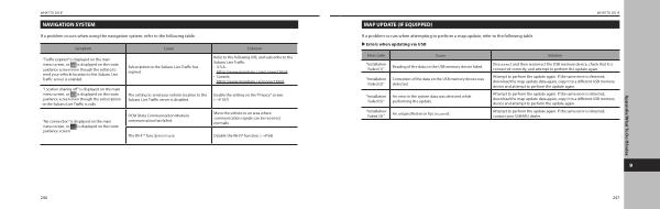If a problem occurs when attempting to perform a map update , refer to the following table . �Errors when updating via USB