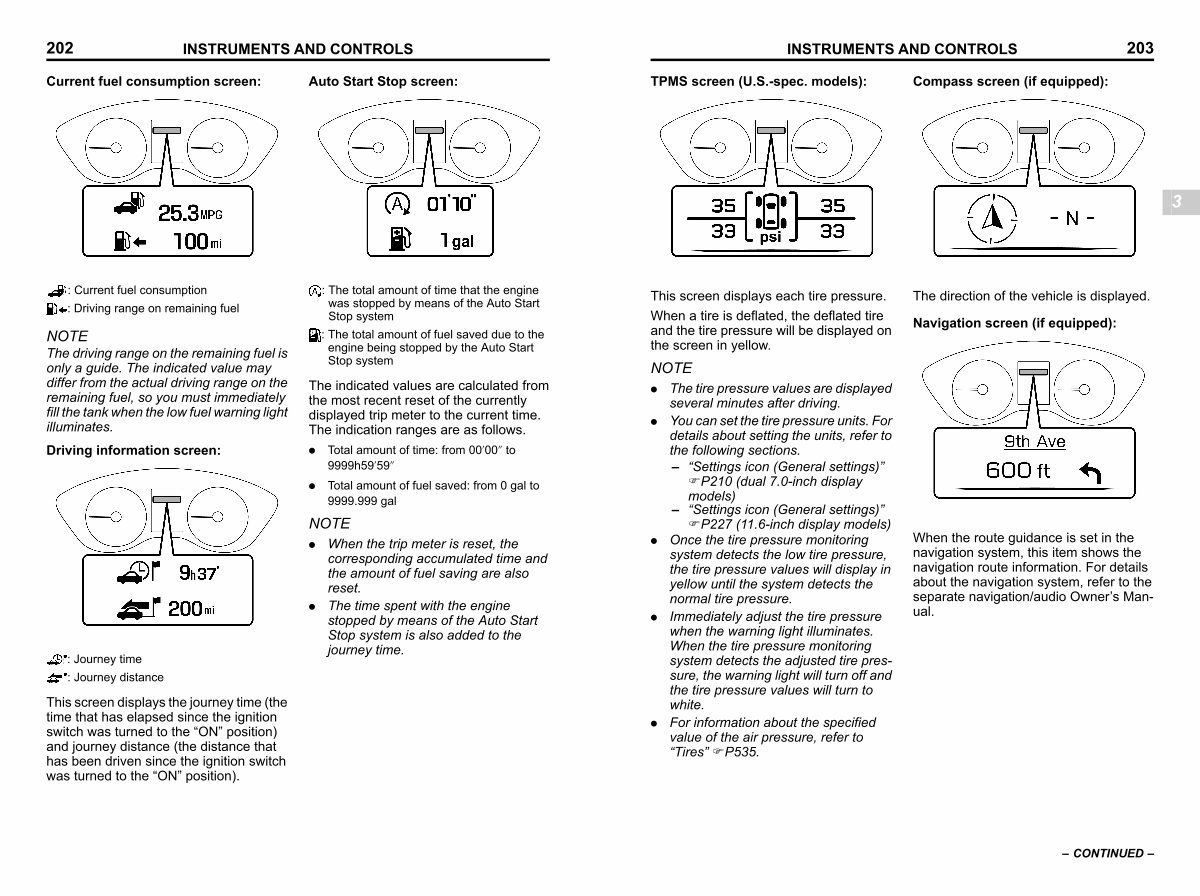 Current fuel consumption screen: Auto Start Stop screen: