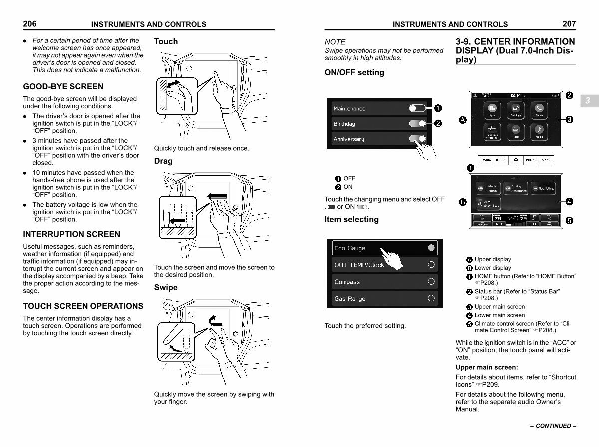 The center information display has a touch screen. Operations are performed by touching the touch screen directly.
