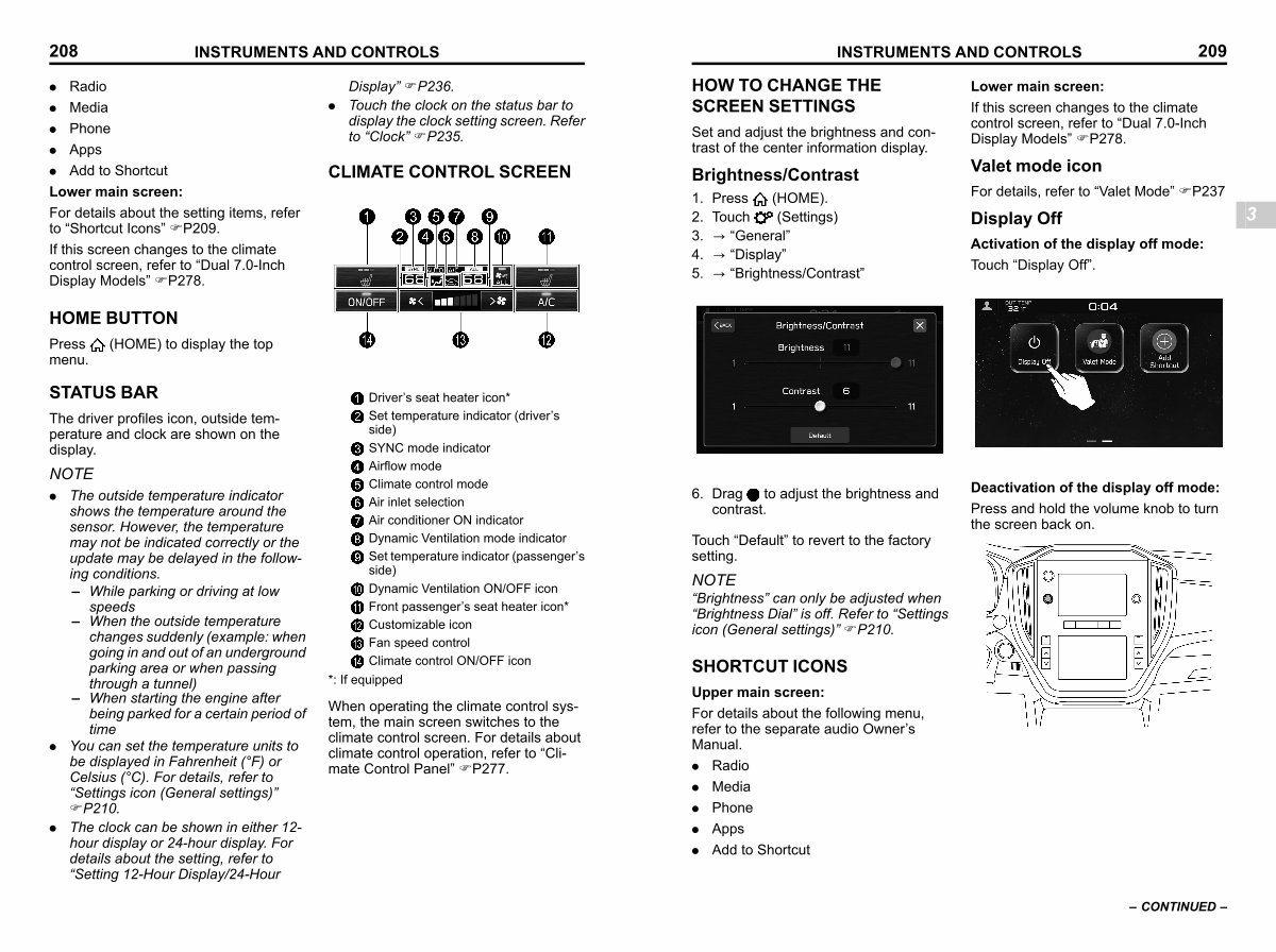 If this screen changes to the climate control screen, refer to“ Dual 7.0-Inch Display Models” FP278.