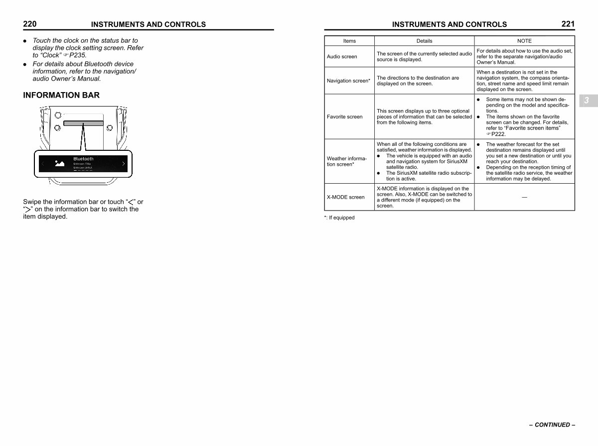 . For details about Bluetooth device information, refer to the navigation / audio Owner’ s Manual.