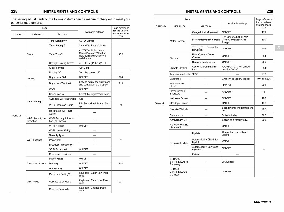 The setting adjustments to the following items can be manually changed to meet your personal requirements.