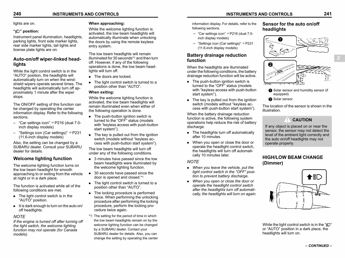 When the headlights are illuminated under the following conditions, the battery drainage reduction function will be active.