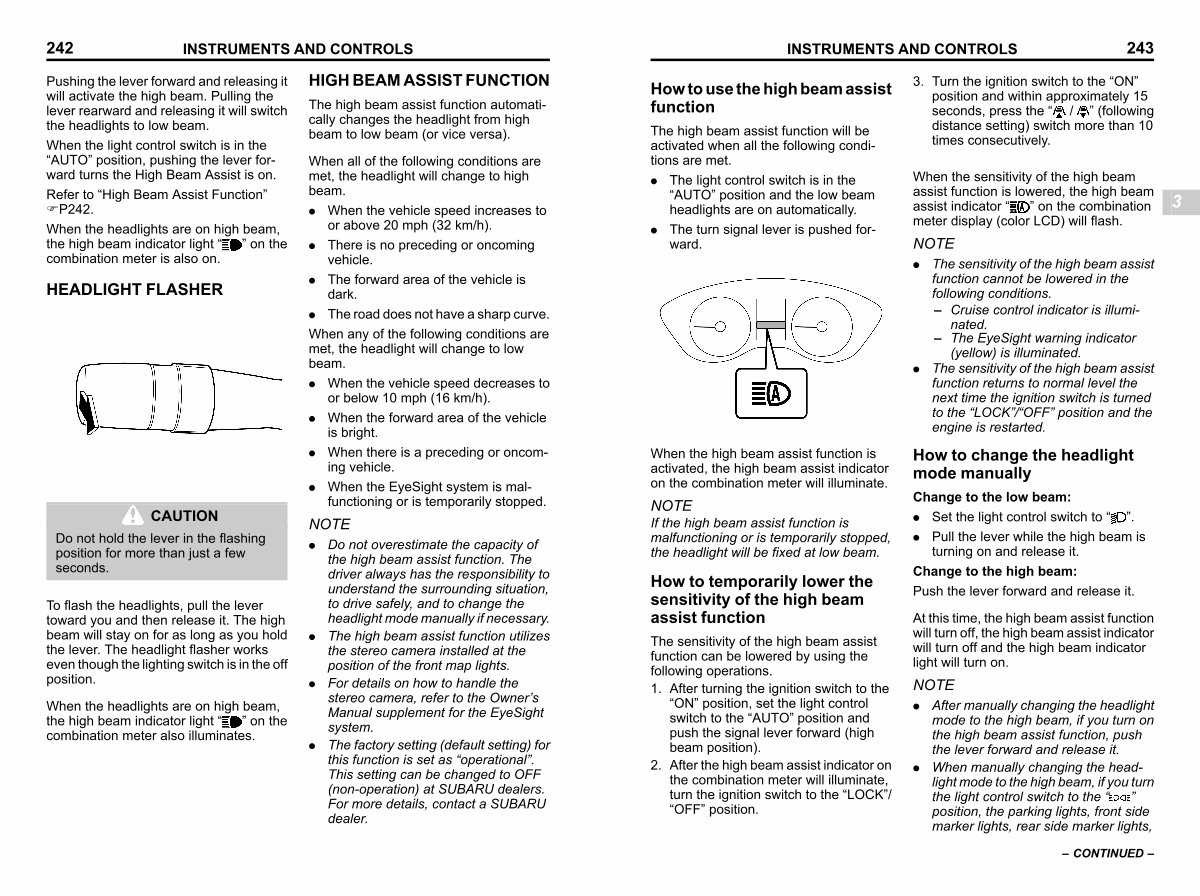 ( yellow) is illuminated.. The sensitivity of the high beam assist function returns to normal level the next time the ignition switch is turned to the“ LOCK”/“ OFF” position and the engine is restarted.
