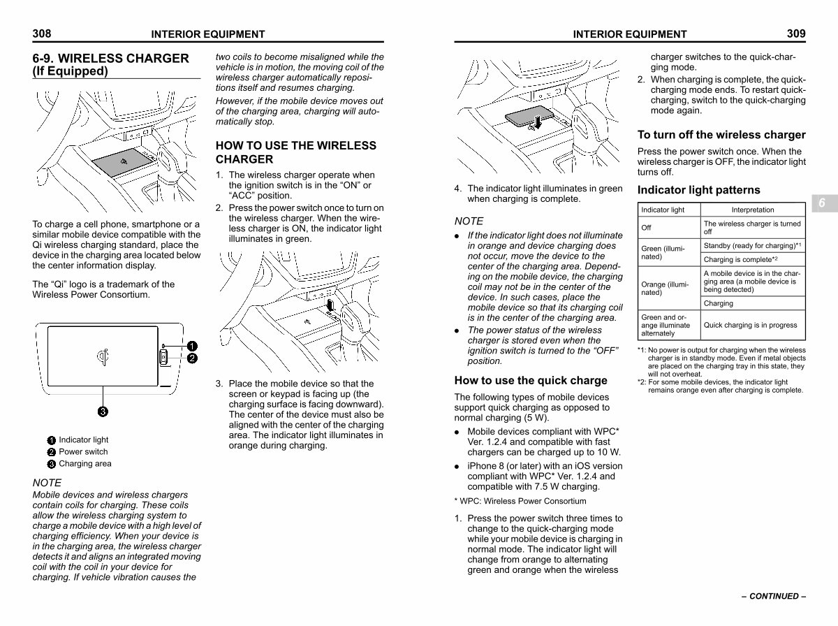 . The power status of the wireless charger is stored even when the ignition switch is turned to the“ OFF” position.