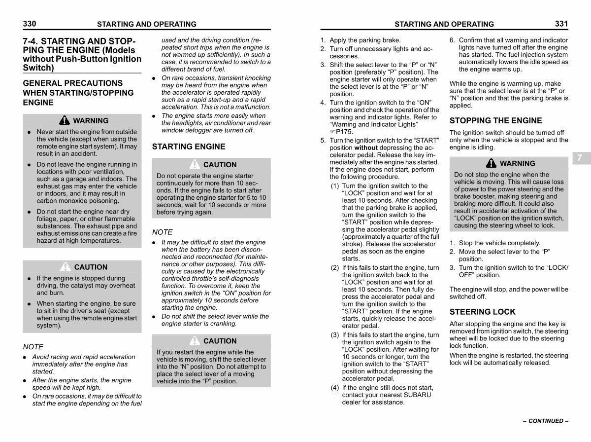 7-4. STARTING AND STOP- PING THE ENGINE( Models without Push-Button Ignition Switch) s07bd