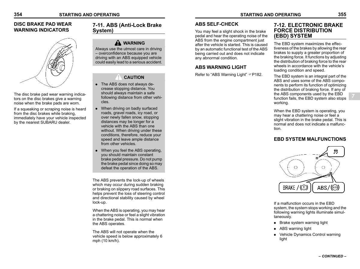 . When you feel the ABS operating, you should maintain constant brake pedal pressure. Do not pump the brake pedal since doing so may defeat the operation of the ABS.