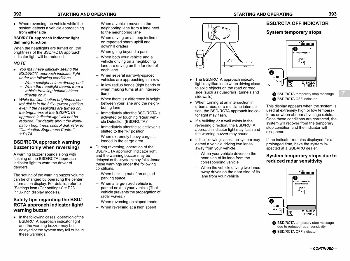 When the headlights are turned on, the brightness of the BSD / RCTA approach indicator light will be reduced.