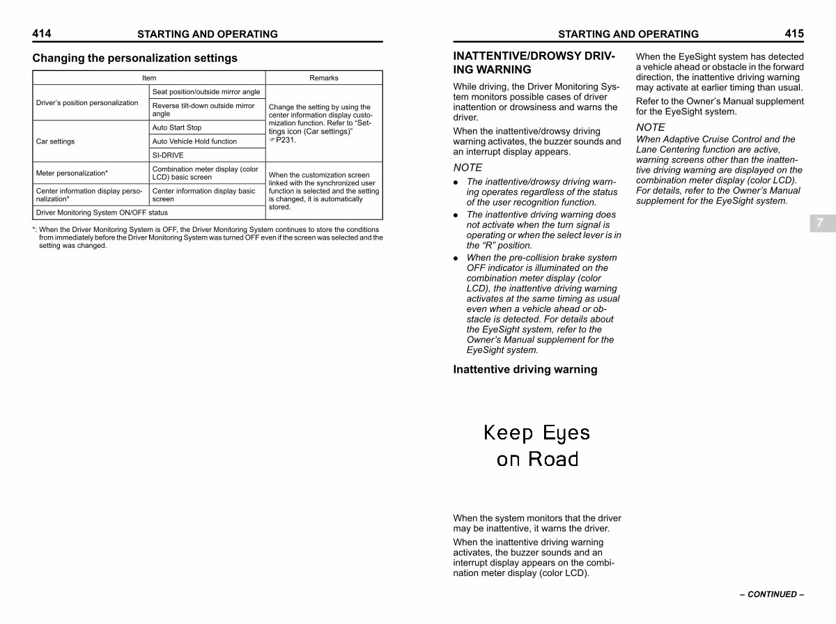 *: When the Driver Monitoring System is OFF, the Driver Monitoring System continues to store the conditions from immediately before the Driver Monitoring System was turned OFF even if the screen was selected and the setting was changed.