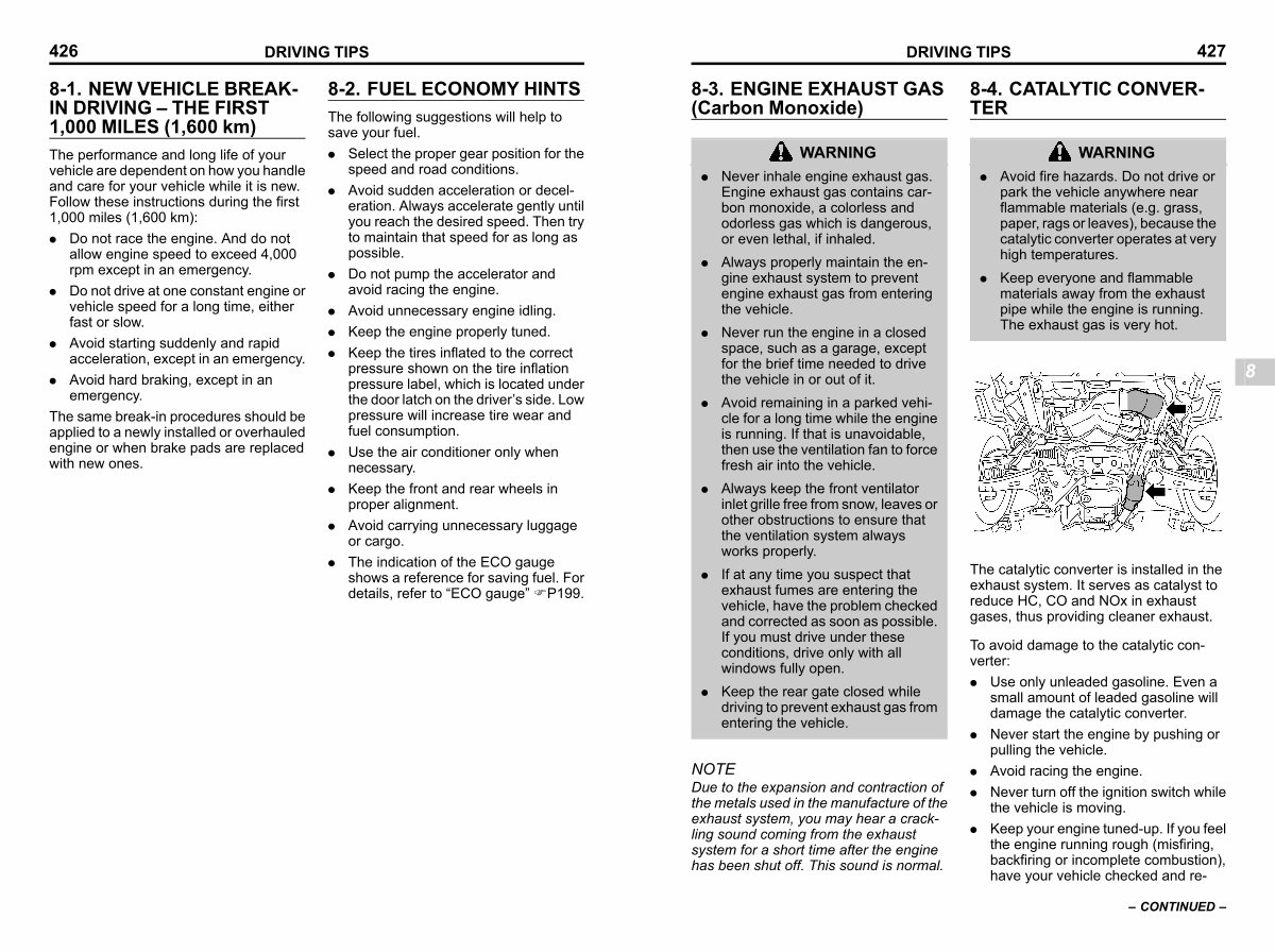 . Keep the rear gate closed while driving to prevent exhaust gas from entering the vehicle.