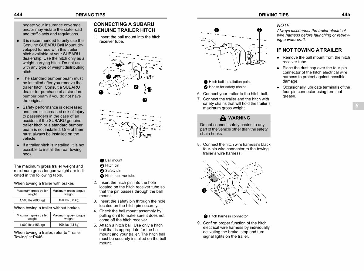 7. Connect the trailer and the hitch with safety chains that will hold the trailer’ s maximum gross weight.