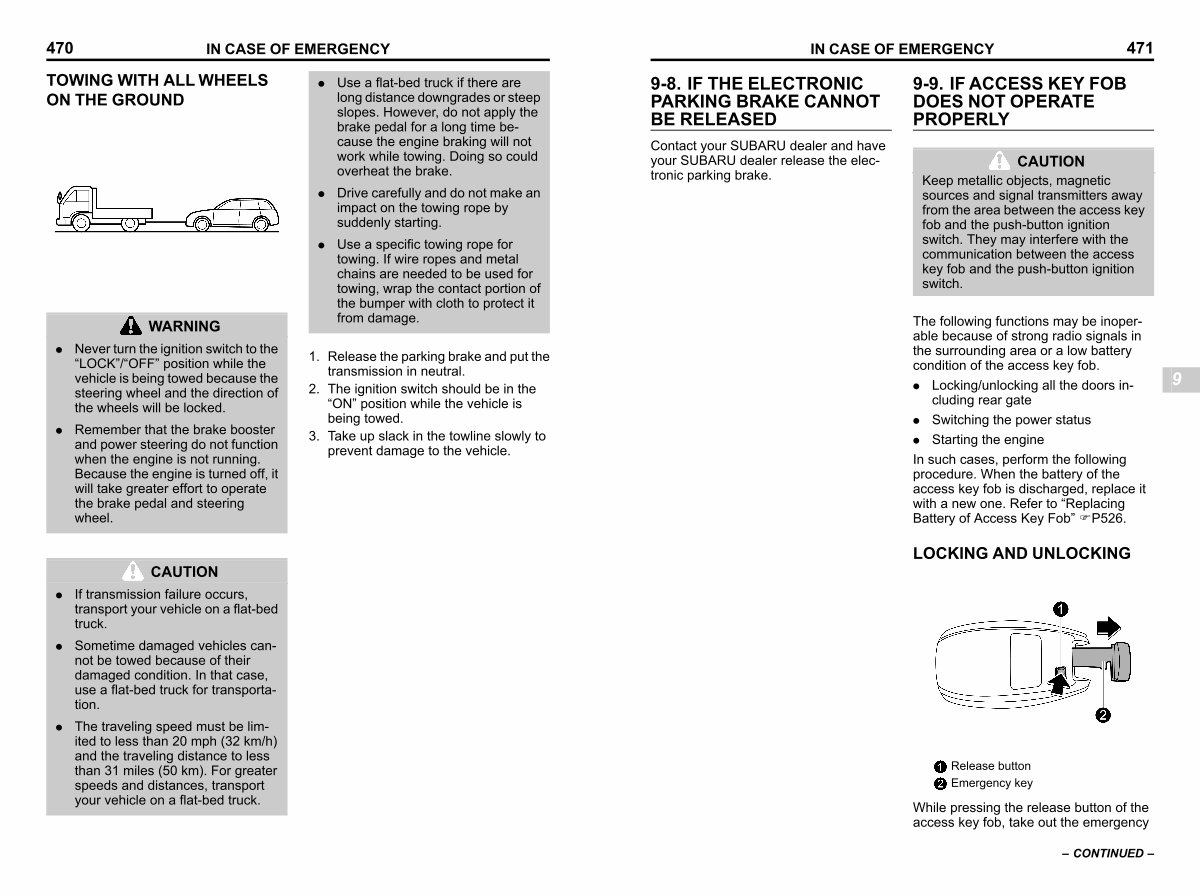 2. The ignition switch should be in the“ ON” position while the vehicle is being towed.
