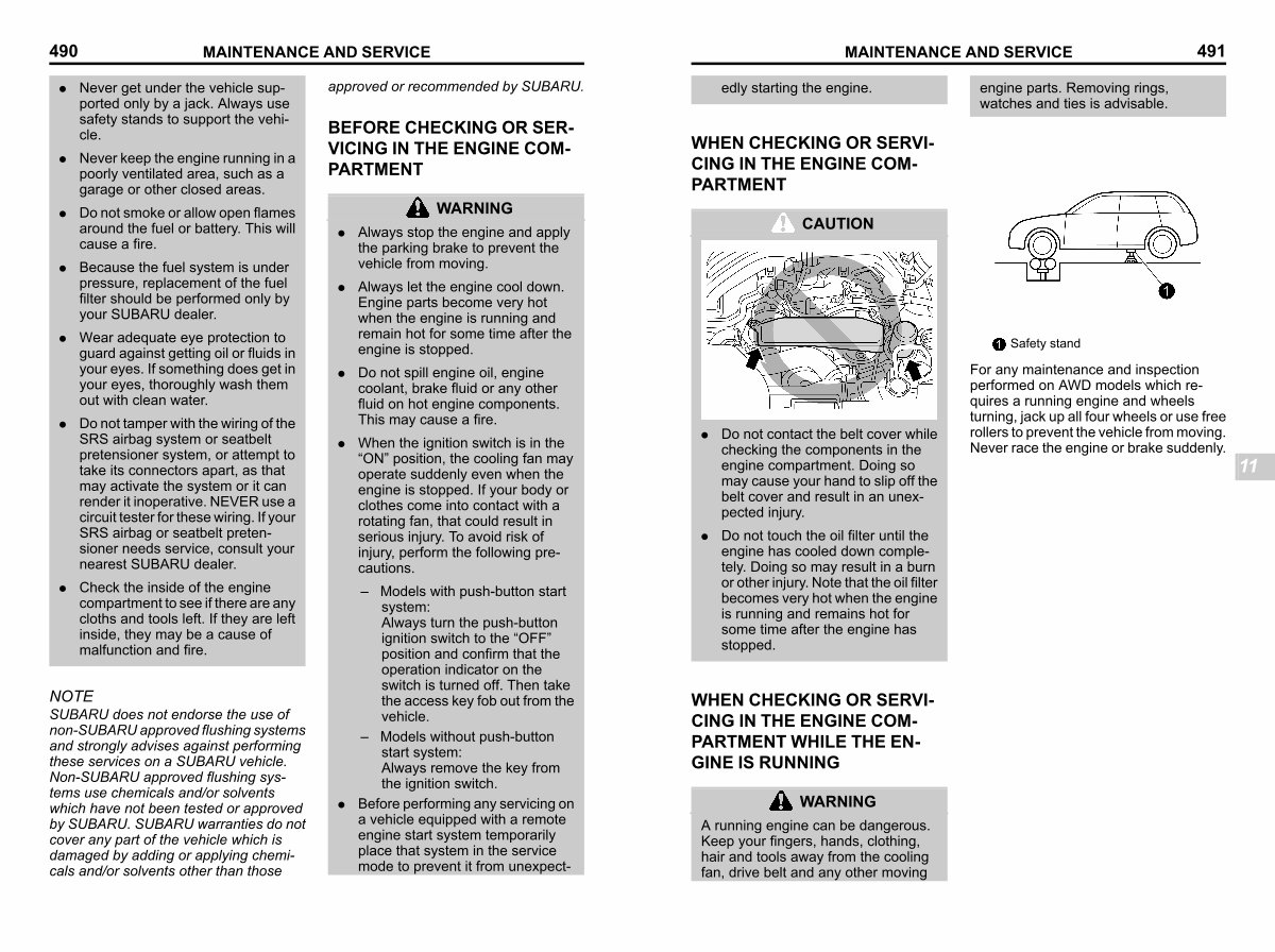 SUBARU does not endorse the use of non-SUBARU approved flushing systems and strongly advises against performing these services on a SUBARU vehicle. Non-SUBARU approved flushing systems use chemicals and / or solvents which have not been tested or approved by SUBARU. SUBARU warranties do not cover any part of the vehicle which is damaged by adding or applying chemicals and / or solvents other than those approved or recommended by SUBARU.