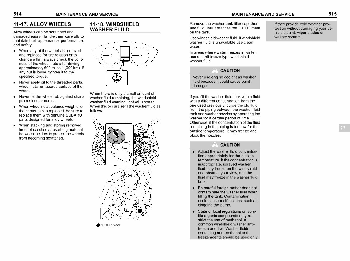 . When wheel nuts, balance weights, or the center cap is replaced, be sure to replace them with genuine SUBARU parts designed for alloy wheels.