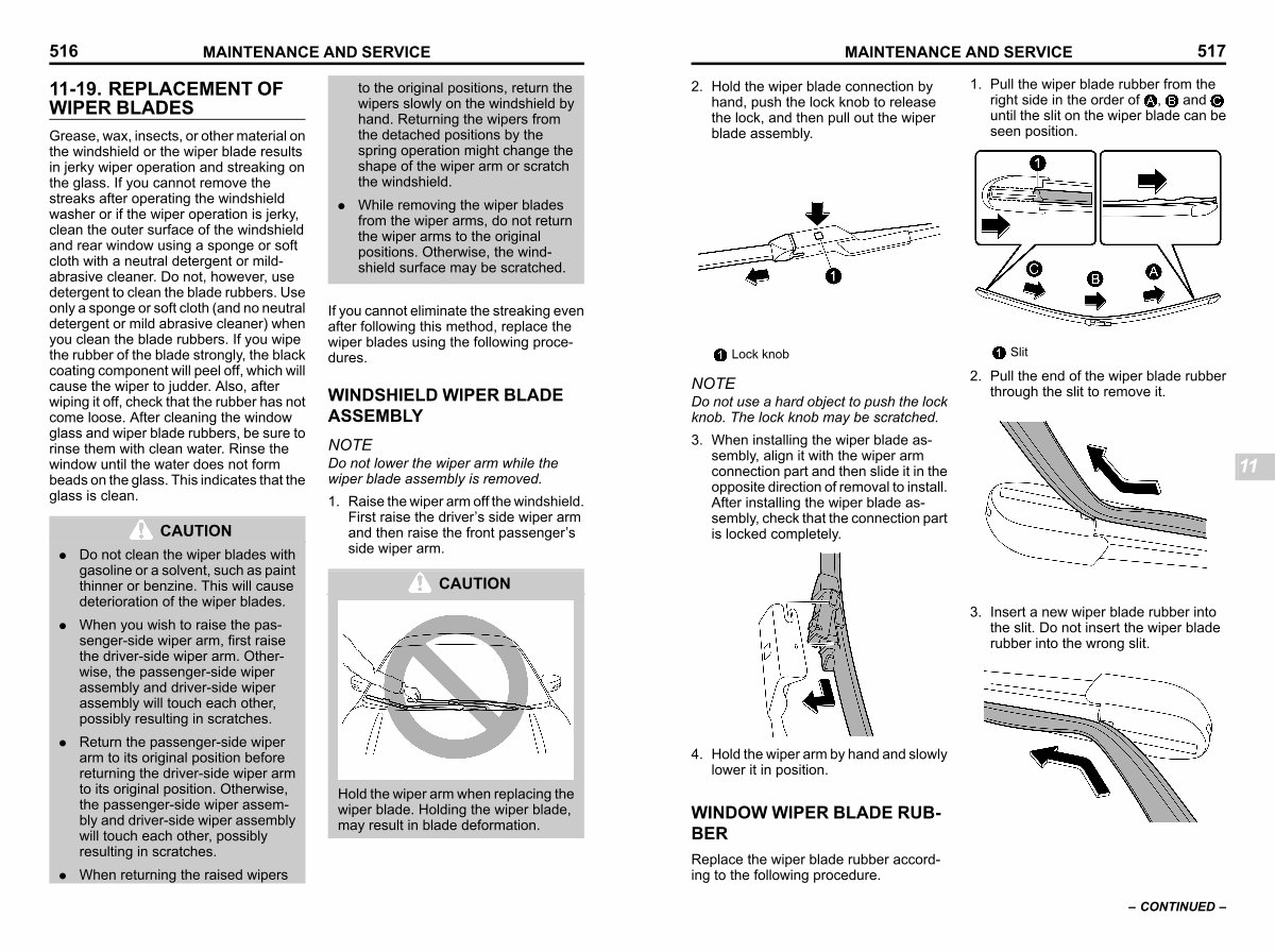 11-19. REPLACEMENT OF WIPER BLADES s11az